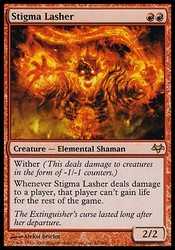 | Card Text | Wither (This deals damage to creatures in the form of -1/-1 counters.) Whenever Stigma Lasher deals damage to a player, that player can"t gain life for the rest of the game. |