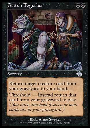 | Card Text | Return target creature card from your graveyard to your hand. Threshold - Return that card from your graveyard to the battlefield instead if seven or more cards are in your graveyard. |