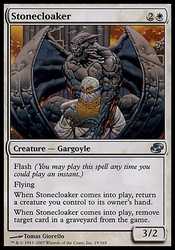 When Stonecloaker enters the battlefield, return a creature you control to its owner"s hand.