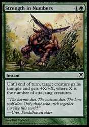 Card TextUntil end of turn, target creature gains trample and gets +X/+X, where X is the number of attacking creatures.