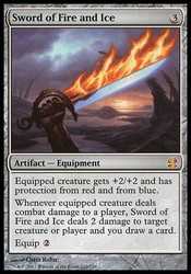 Whenever equipped creature deals combat damage to a player, Sword of Fire and Ice deals 2 damage to target creature or player and you draw a card.
