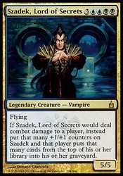 | Card Text | Flying If Szadek, Lord of Secrets would deal combat damage to a player, instead put that many +1/+1 counters on Szadek and that player puts that many cards from the top of his or her library into his or her graveyard. |