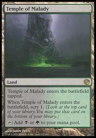 | Card Text | Temple of Malady enters the battlefield tapped. When Temple of Malady enters the battlefield, scry 1. (Look at the top card of your library. You may put that card on the bottom of your library.)