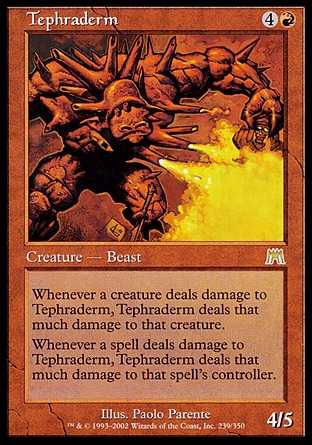 Card TextWhenever a creature deals damage to Tephraderm, Tephraderm deals that much damage to that creature.