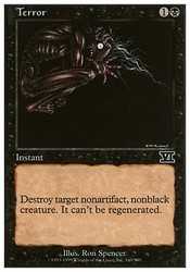 Card TextDestroy target nonartifact, nonblack creature. It can"t be regenerated.