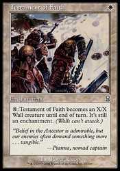 | Card Text | : Testament of Faith becomes an X/X Wall creature with defender in addition to its other types until end of turn. |