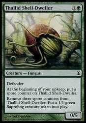 | Card Text | Defender At the beginning of your upkeep, put a spore counter on Thallid Shell-Dweller. Remove three spore counters from Thallid Shell-Dweller: Put a 1/1 green Saproling creature token onto the battlefield. |