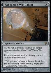 Card Text, : Put a divinity counter on target permanent other than That Which Was Taken.