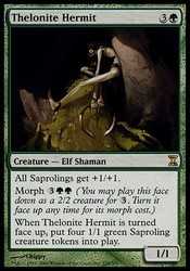 | Card Text | Saproling creatures get +1/+1. Morph When Thelonite Hermit is turned face up, put four 1/1 green Saproling creature tokens onto the battlefield. |