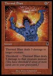 | Card Text | Thermal Blast deals 3 damage to target creature. Threshold - Thermal Blast deals 5 damage to that creature instead if seven or more cards are in your graveyard. |