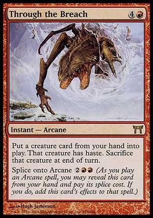| Card Text | You may put a creature card from your hand onto the battlefield. That creature gains haste. Sacrifice that creature at the beginning of the next end step. Splice onto Arcane |
