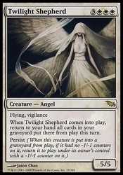 | Card Text | Flying, vigilance When Twilight Shepherd enters the battlefield, return to your hand all cards in your graveyard that were put there from the battlefield this turn. Persist (When this creature dies, if it had no -1/-1 counters on it, return it to the battlefield under its owner"s control with a -1/-1 counter on it.) |