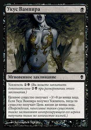 | Card Text | Kicker ![]() (You may pay an additional ![]() as you cast this spell.)Target creature gets +3/+0 until end of turn. If Vampire"s Bite was kicked, that creature gains lifelink until end of turn. (Damage dealt by the creature also causes its controller to gain that much life.) |