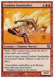 At the beginning of the end step, return Viashino Sandstalker to its owner"s hand. (Return it only if it"s on the battlefield.)