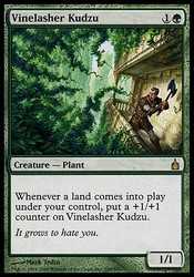 | Card Text | Whenever a land enters the battlefield under your control, put a +1/+1 counter on Vinelasher Kudzu. |