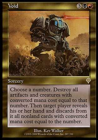 | Card Text | Choose a number. Destroy all artifacts and creatures with converted mana cost equal to that number. Then target player reveals his or her hand and discards all nonland cards with converted mana cost equal to the number. |