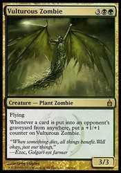 Whenever a card is put into an opponent"s graveyard from anywhere, put a +1/+1 counter on Vulturous Zombie.