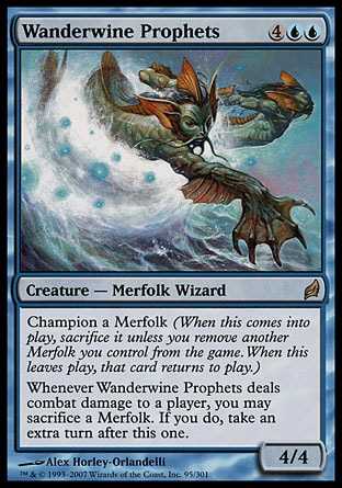 | Card Text | Champion a Merfolk (When this enters the battlefield, sacrifice it unless you exile another Merfolk you control. When this leaves the battlefield, that card returns to the battlefield.) Whenever Wanderwine Prophets deals combat damage to a player, you may sacrifice a Merfolk. If you do, take an extra turn after this one. |