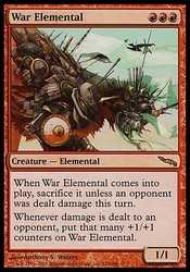 | Card Text | When War Elemental enters the battlefield, sacrifice it unless an opponent was dealt damage this turn. Whenever an opponent is dealt damage, put that many +1/+1 counters on War Elemental. |