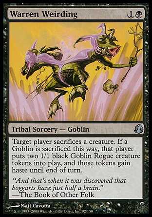 | Card Text | Target player sacrifices a creature. If a Goblin is sacrificed this way, that player puts two 1/1 black Goblin Rogue creature tokens onto the battlefield, and those tokens gain haste until end of turn. |