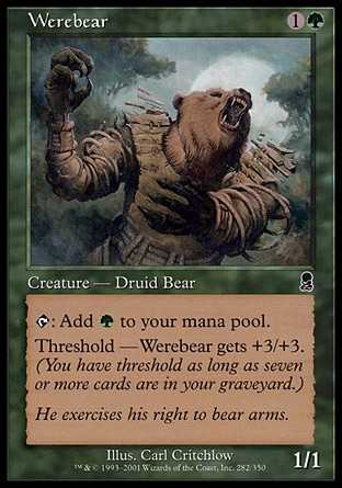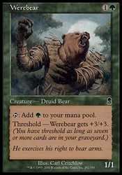 | Card Text | : Add to your mana pool.Threshold - Werebear gets +3/+3 as long as seven or more cards are in your graveyard. |