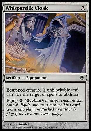 | Card Text | Equipped creature can"t be blocked and has shroud. (It can"t be the target of spells or abilities.) Equip |