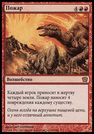 | Card Text | Each player sacrifices four lands. Wildfire deals 4 damage to each creature. |