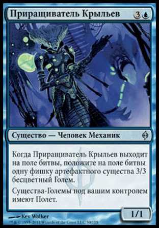 | Card Text | When Wing Splicer enters the battlefield, put a 3/3 colorless Golem artifact creature token onto the battlefield. Golem creatures you control have flying. |