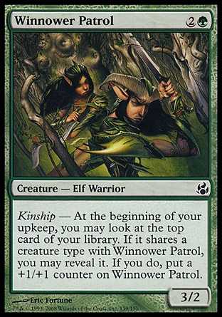 | Card Text | Kinship - At the beginning of your upkeep, you may look at the top card of your library. If it shares a creature type with Winnower Patrol, you may reveal it. If you do, put a +1/+1 counter on Winnower Patrol. |