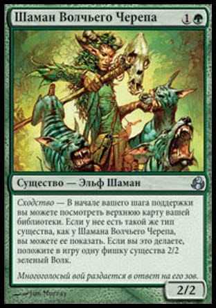 | Card Text | Kinship - At the beginning of your upkeep, you may look at the top card of your library. If it shares a creature type with Wolf-Skull Shaman, you may reveal it. If you do, put a 2/2 green Wolf creature token onto the battlefield. |