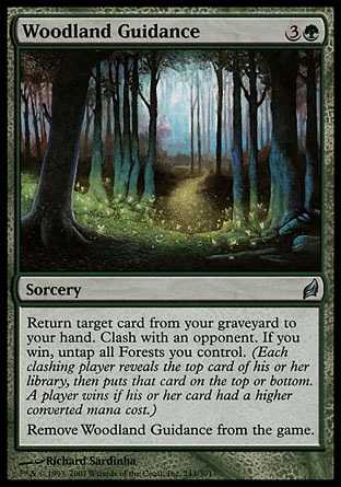Card TextReturn target card from your graveyard to your hand. Clash with an opponent. If you win, untap all Forests you control. (Each clashing player reveals the top card of his or her library, then puts that card on the top or bottom. A player wins if his or her card had a higher converted mana cost.)