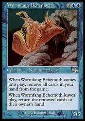 | Card Text | When Wormfang Behemoth enters the battlefield, exile all cards from your hand. When Wormfang Behemoth leaves the battlefield, return the exiled cards to their owner"s hand. |