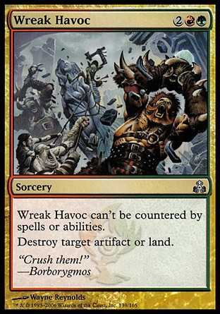 | Card Text | Wreak Havoc can"t be countered by spells or abilities. Destroy target artifact or land. |