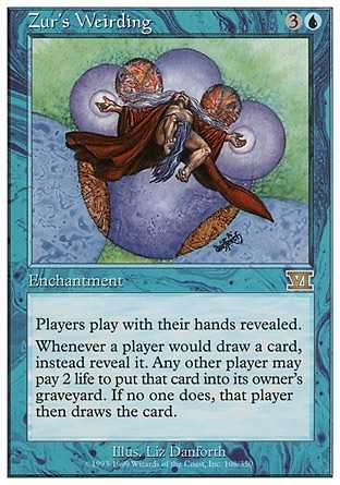 | Card Text | Players play with their hands revealed. If a player would draw a card, he or she reveals it instead. Then any other player may pay 2 life. If a player does, put that card into its owner"s graveyard. Otherwise, that player draws a card. |
