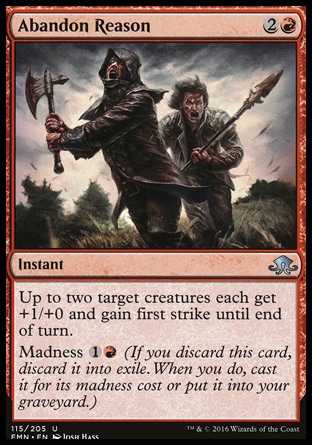 | Card Text | Up to two target creatures each get +1/+0 and gain first strike until end of turn. Madness {1}{R} (If you discard this card, discard it into exile. When you do, cast it for its madness cost or put it into your graveyard.) |