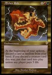 Card TextAt the beginning of your upkeep, discard a card at random. If you discard a creature card this way, return it from your graveyard to the battlefield unless any player pays 5 life.