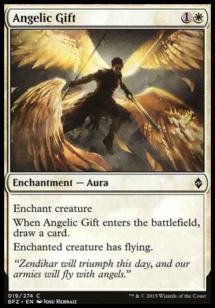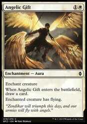 | Card Text | Enchant creature When Angelic Gift enters the battlefield, draw a card. Enchanted creature has flying. |