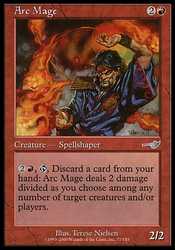 | Card Text | {2}{R}, {T}, Discard a card: Arc Mage deals 2 damage divided as you choose among one or two target creatures and/or players. |