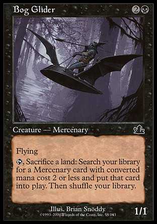| Card Text | Flying {T}, Sacrifice a land: Search your library for a Mercenary permanent card with converted mana cost 2 or less and put it onto the battlefield. Then shuffle your library. |