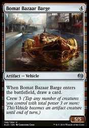 | Card Text | When Bomat Bazaar Barge enters the battlefield, draw a card. Crew 3 (Tap any number of creatures you control with total power 3 or more: This Vehicle becomes an artifact creature until end of turn.) |