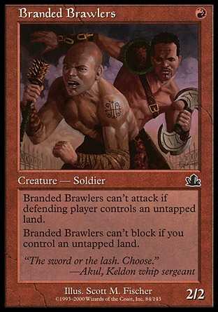 Card TextBranded Brawlers can t attack if defending player controls an untapped land. Branded Brawlers can t block if you control an untapped land.