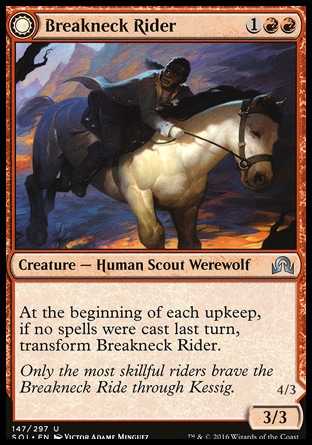 | Card Text | At the beginning of each upkeep, if no spells were cast last turn, transform Breakneck Rider. |
