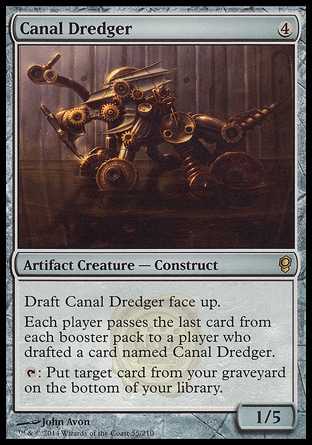 Card TextDraft Canal Dredger face up. Each player passes the last card from each booster pack to a player who drafted a card named Canal Dredger. {T}: Put target card from your graveyard on the bottom of your library.