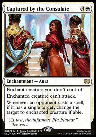 | Card Text | Enchant creature you don't control Enchanted creature can't attack. Whenever an opponent casts a spell, if it has a single target, change the target to enchanted creature if able. |