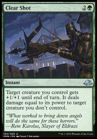 | Card Text | Target creature you control gets +1/+1 until end of turn. It deals damage equal to its power to target creature you don't control. |