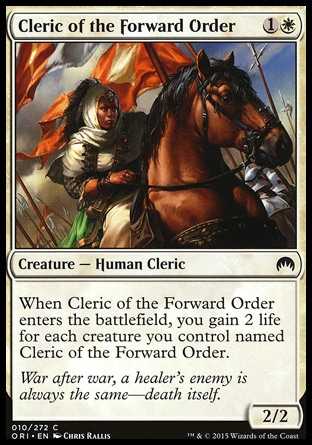 Card TextWhen Cleric of the Forward Order enters the battlefield, you gain 2 life for each creature you control named Cleric of the Forward Order.