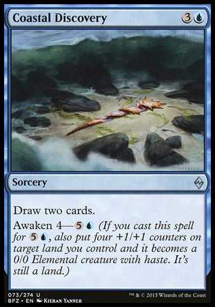 | Card Text | Draw two cards. Awaken 4—{5}{U} (If you cast this spell for {5}{U}, also put four +1/+1 counters on target land you control and it becomes a 0/0 Elemental creature with haste. It's still a land.) |