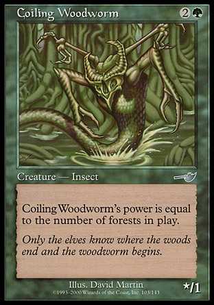 Card TextCoiling Woodworm s power is equal to the number of Forests on the battlefield.