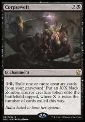 Card Text{1}{B}, Exile one or more creature cards from your graveyard: Put an X/X black Zombie Horror creature token onto the battlefield tapped, where X is twice the number of cards exiled this way.