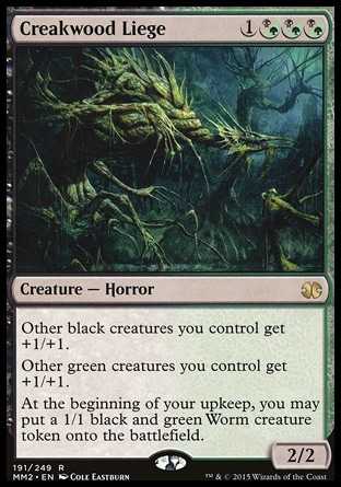 | Card Text | Other black creatures you control get +1/+1. Other green creatures you control get +1/+1. At the beginning of your upkeep, you may put a 1/1 black and green Worm creature token onto the battlefield. |